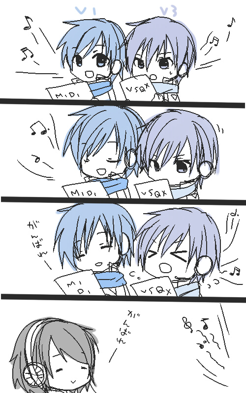不安定なKAITO_V3を、初代KAITOが見守って支えてくれています。